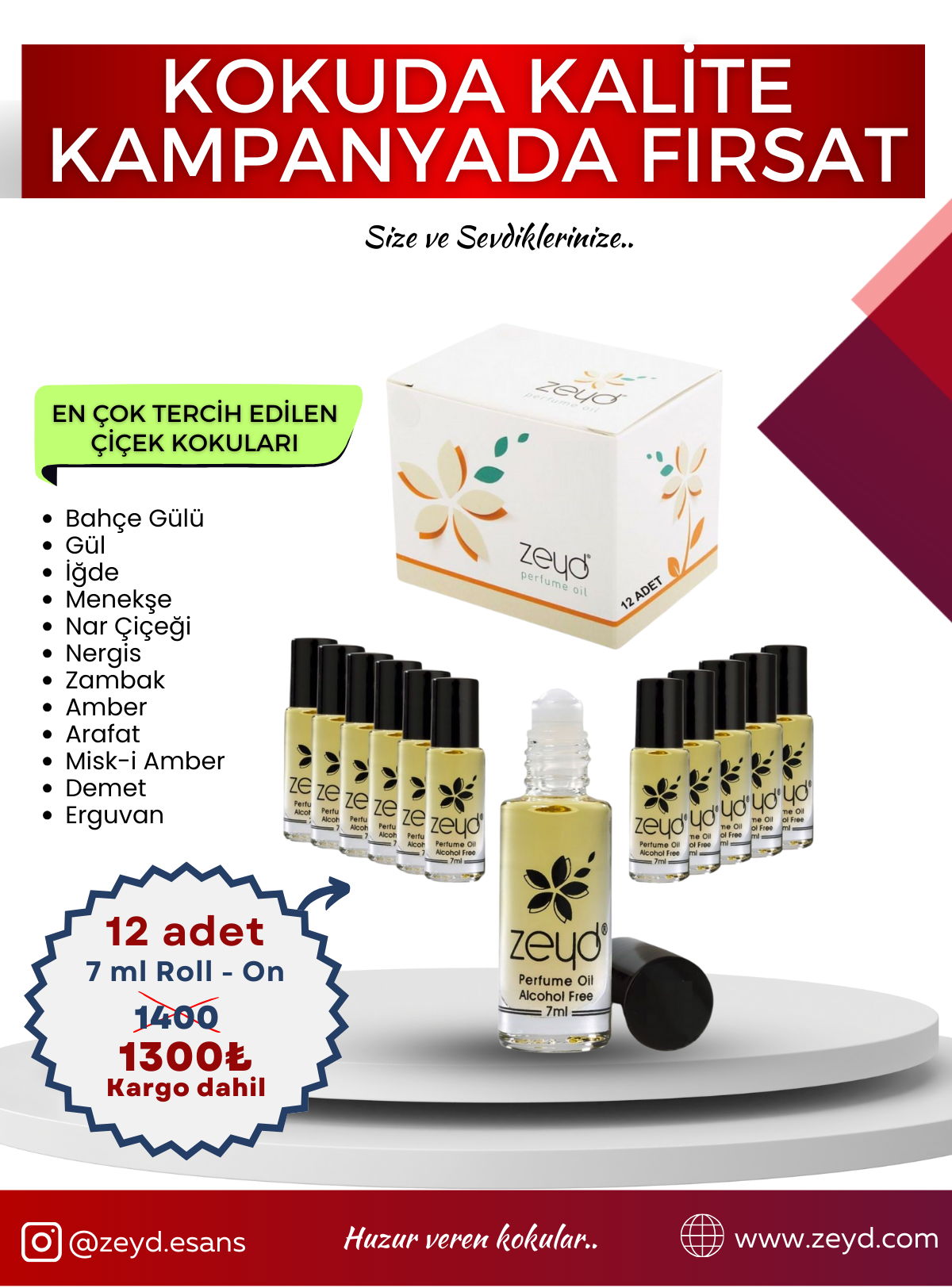 Çiçek Kokuları Seti Alkolsüz Esans Roll on EDP Unisex 7 ml 12 Adet paket içeriği