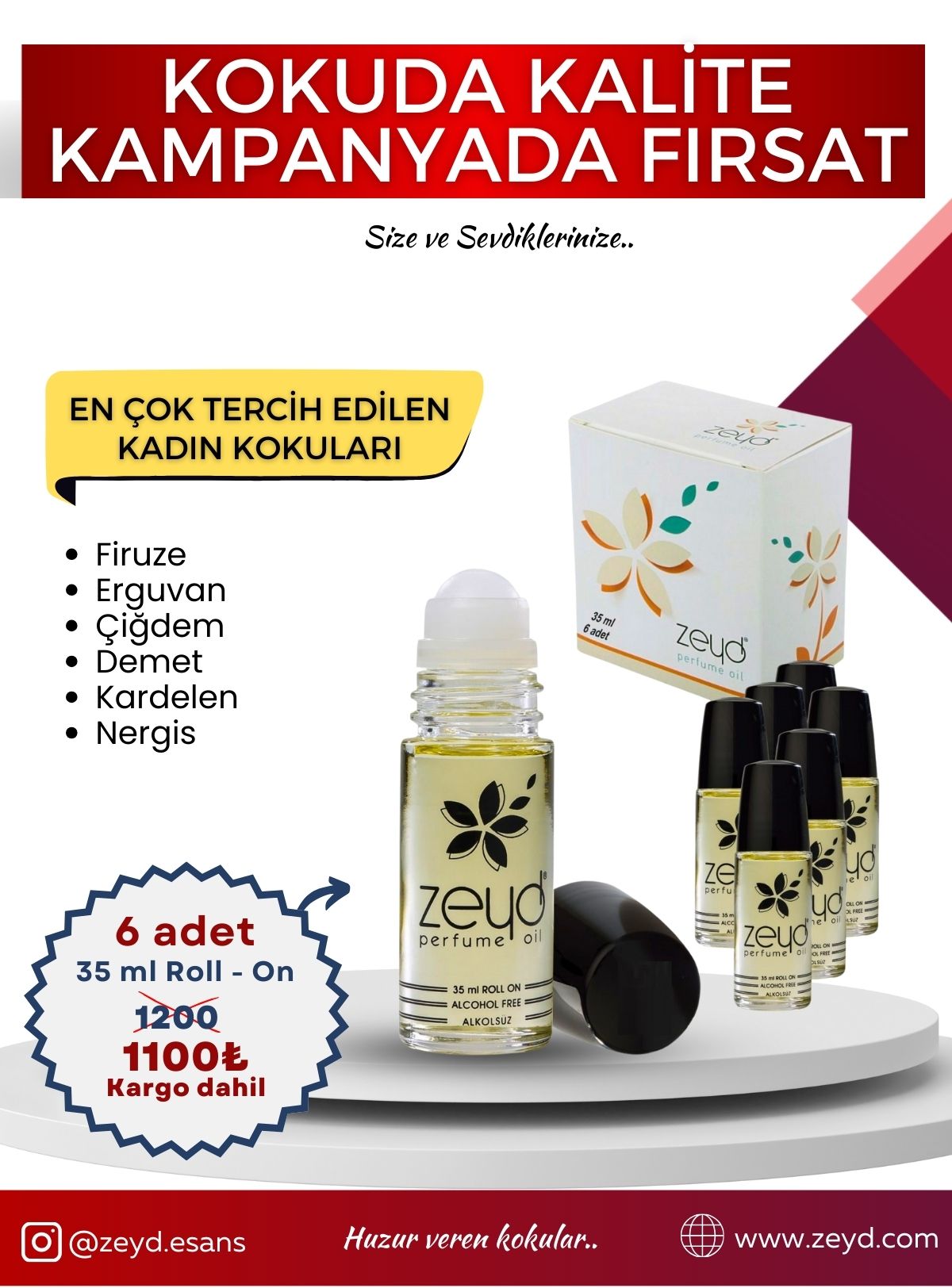 Kadın Kokuları Seti Alkolsüz Esans Roll on EDP Unisex 35 ml 6 Adet paket içeriği